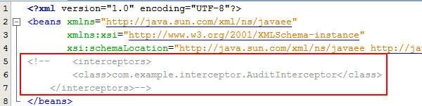 In this tutorial, you create an interceptor binding type, which is an annotation used to associate an interceptor with either a method or a bean class. The interceptor binding type is also associated with an interceptor class that contains a single method annotated with @AroundInvoke.