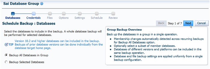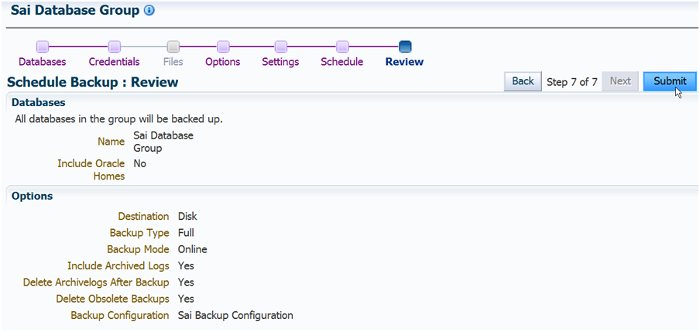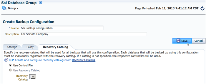 This new group backups feature can potentially help the DBA in setting up RMAN backups for a large number of databases at the group level, as opposed to going through each database Home Page in Enterprise Manager and setting up and scheduling RMAN backups at the database level. If used carefully, this could save a lot of time, particularly in the case of self-service databases created by Cloud Self Service users.