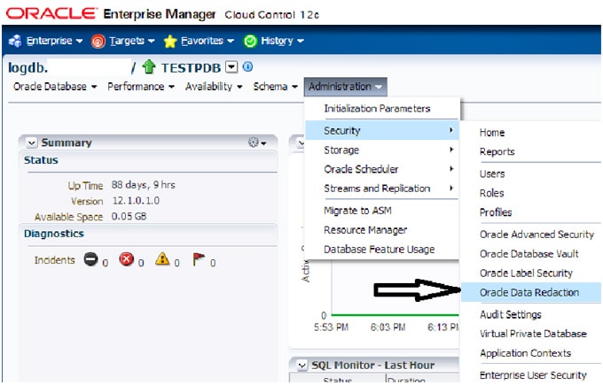 Accediendo a la opción “Oracle Data Redaction”: