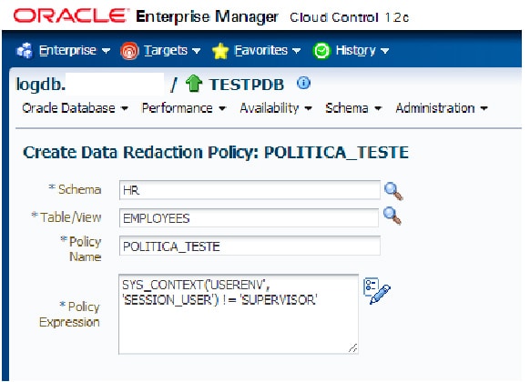 Usando “Oracle Data Redaction” con EM 12c: