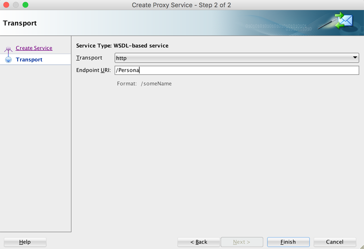 Seleccionamos el transporte y especificamos el Enpoint URI deseado. Finish.