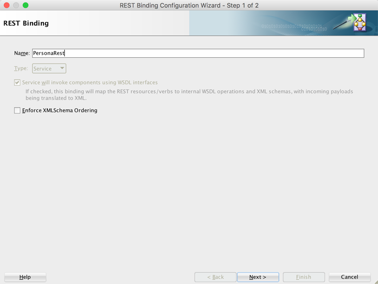 En la ventana de creación estableceremos el nombre del servicio proxy de tipo REST, en este caso PersonaRest. Next.