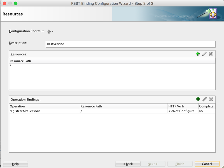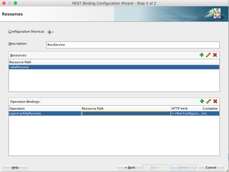 Una vez agregado el recurso, doble clic en el registro de la tabla Operation Bindings.