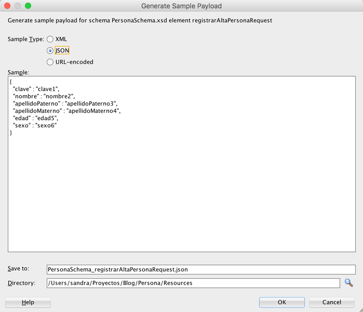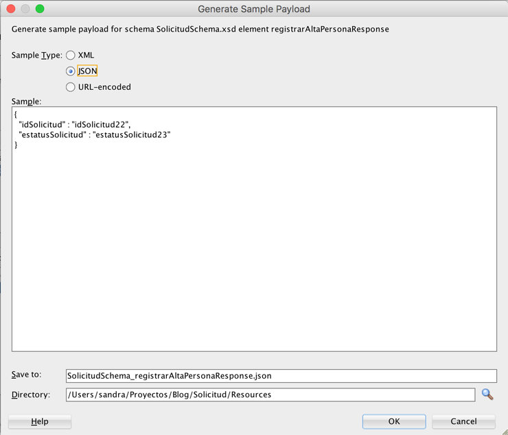 Para ver un ejemplo del mensaje de request en el formato que deseemos, dar clic en el ícono con los engranes. Una vez revisado, OK o Cancel para cerrar la ventana.