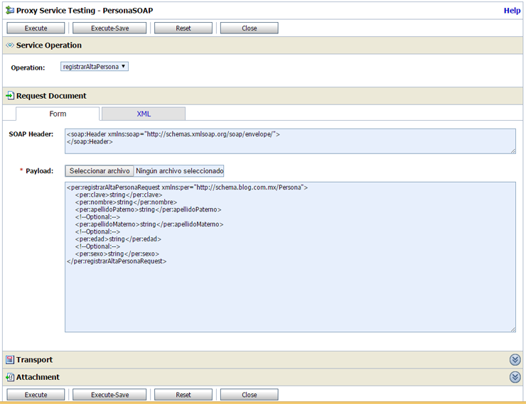 Comenzamos por la definición del WSDL y XSD del servicio SOAP llamado Persona. Es muy importante resaltar cómo están declarados los elementos involucrados en la definición del mensaje correspondiente al header.