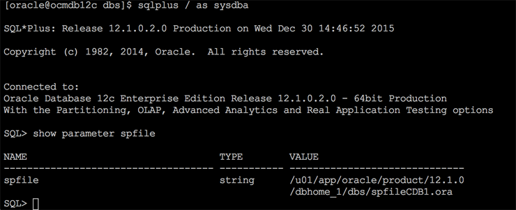 Podemos confirmar que este arquivo de parâmetros está em uso pelo banco de dados:
