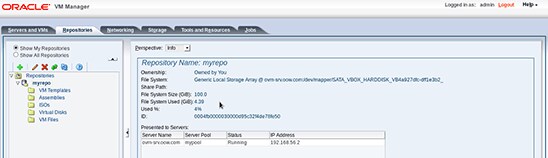 Note: For non-NFS storage (which is our case here), an OCFS2 (Oracle Cluster File System) is created on the repository.