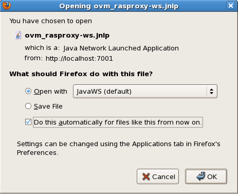 /usr/java/jre1.7.0_04/bin/javaws(installed with the JRE) to open.jnlpfiles (necessary only the first time you open a VM console), as shown in Figure 22.