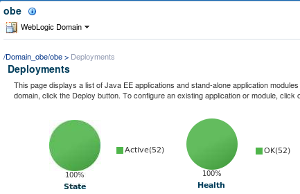 The top half of the Deployments page displays graphics that show the state of applications that are deployed in the domain.