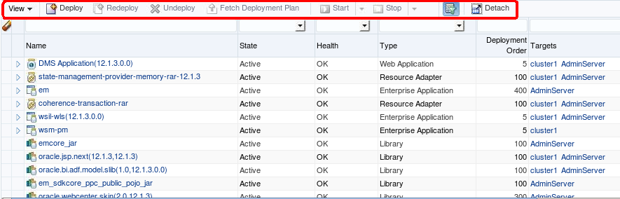 FMWC enables you to manage your Java EE applications, including deployment, redeployment, working with deployment plans, monitoring, and more. Follow these steps to learn how to manage applications.