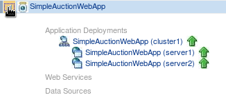 Upload the SimpleAuctionWebApp.war file to your machine where the AdminServer is running. Click Deploy to deploy a new application