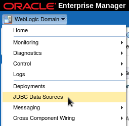 Click the WebLogic Domain drop down list control and select JDBC Data Sources.