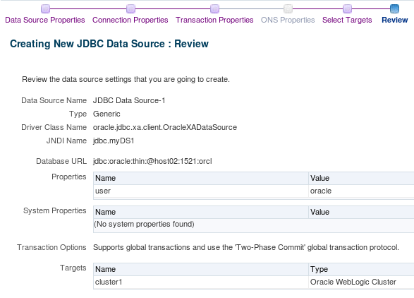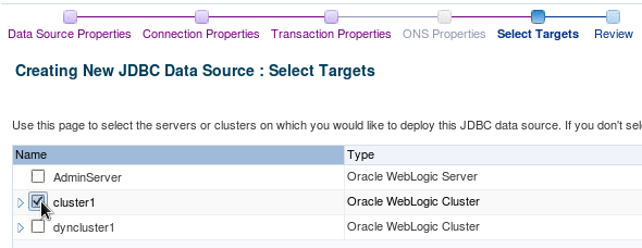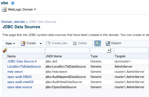 Now you should see all of the data sources that are configured for cluster1. The data sources are targeted to the cluster so they are shown at this level appropriately.