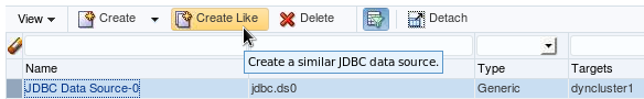 If you already have a data source that you want to use as a starting point for creating a new data source, then you can select it and click Create Like to start the JDBC data source wizard with the original settings in place.
