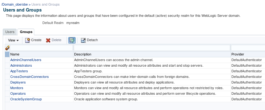 FMWC enables you to manage the users and groups in the identity store configured for the domain. FMWC-enabled domains are based on Oracle Platform Security Services (OPSS) instead of the default security framework configured in the WebLogic Server domain. When a WebLogic domain is OPSS-enabled, OPSS is not used to configure the identity store for authentication. OPSS depends on the authentication providers configured in the WebLogic domain's security realm to determine the identity store to use for other OPSS security features, such as authorization. OPSS supports multiple authentication providers. For your domain, the WebLogic default authentication provider should be configured, which is associated with the WebLogic embedded LDAP server.