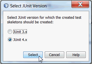 Verify JUnit 4.x is selected in the Select JUnit Version dialog box.