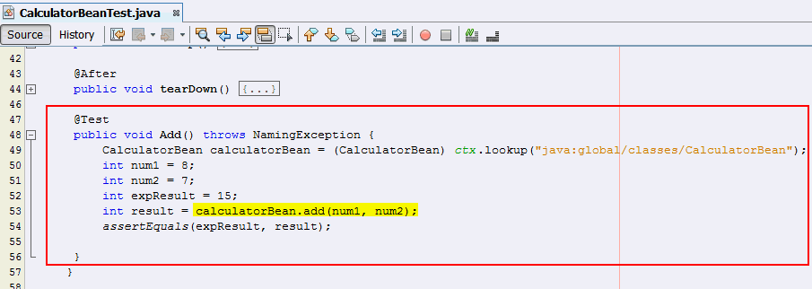 Double-click CalculatorBean.java in the Source Packages node to open in the code editor.