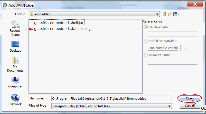 d. Browse to $GLASSFISH_HOME/lib/embedded folder.