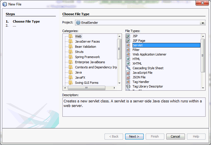 Create the com.example.EmailSessionBean class. This class is a local-interface stateless session EJB. You will add the JavaMail functionality to the EmailSessionBean in a later section.