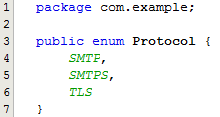 Modify the Protocol enum to contain three fields, SMTP, SMTPS, and TLS.