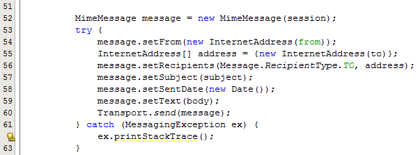 The JavaMail API defines classes which represent the components of a mail system. JavaMail does not implement an email server, instead it allows you to access an email server using a Java API. In order to test the code presented in this tutorial you must have access to an email server. While the JavaMail API specification does not mandate support for specific protocols, JavaMail typically includes support for POP3, IMAP, and SMTP. This tutorial covers sending mail messages and only requires access to an SMTP server.