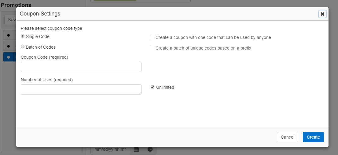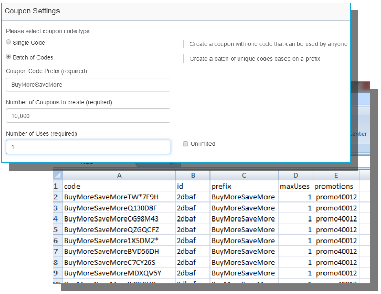- Identify the number of coupons to create in the batch and the usage for each of the coupons