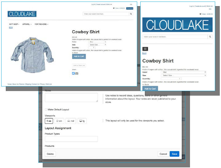 - System will deliver proper viewport-based layouts based on the size of the shopper’s device
