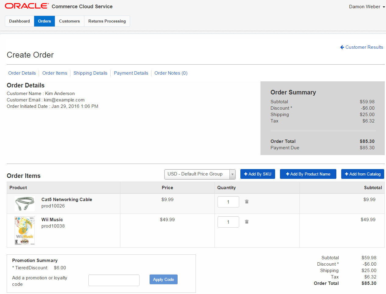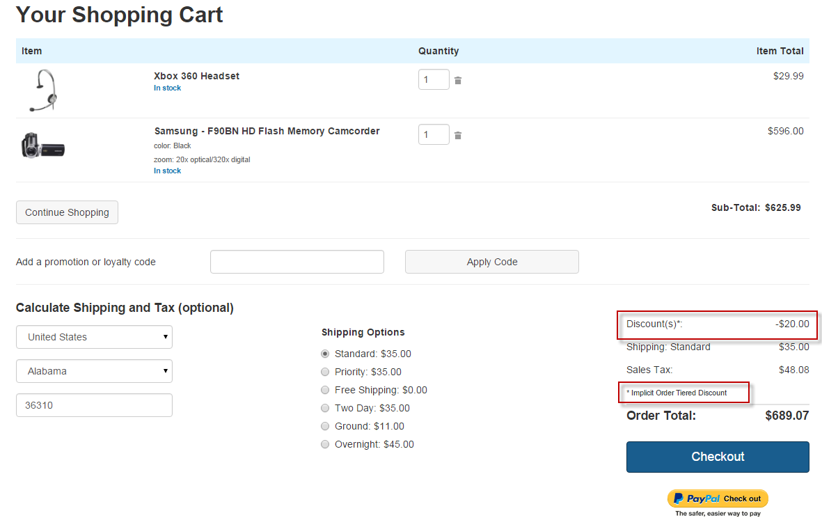 - Supports promotions that are created in the Administrative Console where discount varies based on order value