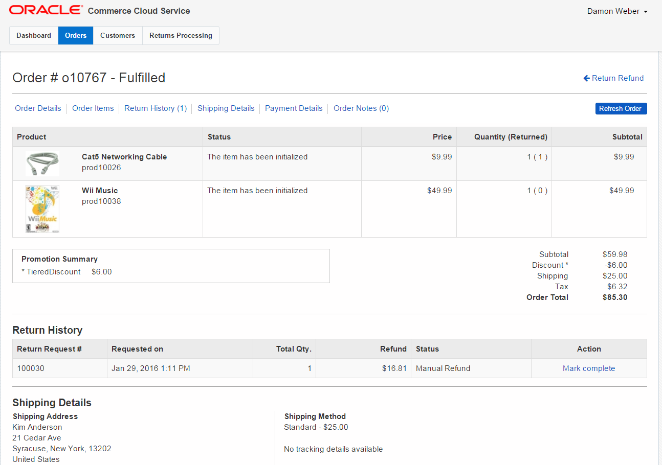 - A customer can create, retrieve, and update custom order properties & values via the Administrative Console APIs