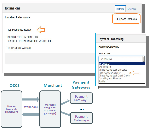 - Customers can change the payment processor without having to make changes through Oracle Commerce Cloud
