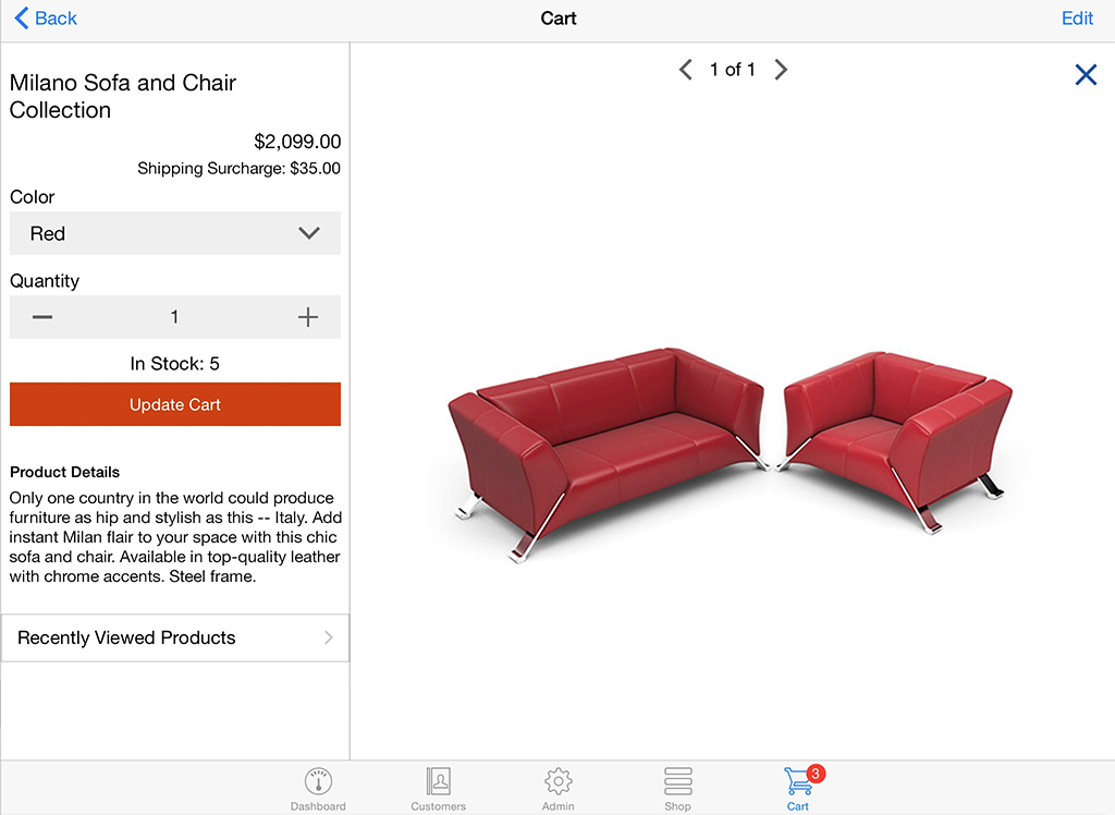 - Contains an Associate Dashboard to display featured collections and a space for text so administrators can communicate with in-store associates