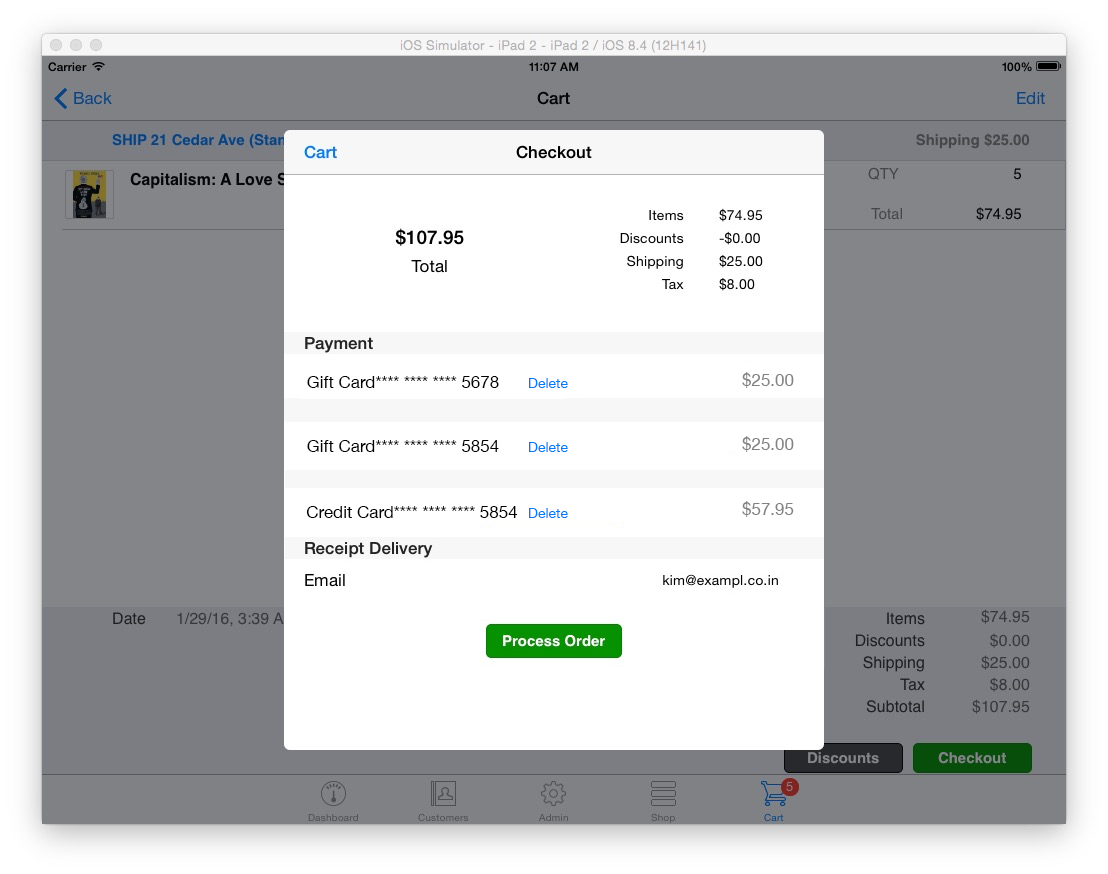 - Store associates can take payments for orders directly in-app, including multiple gift cards per order
