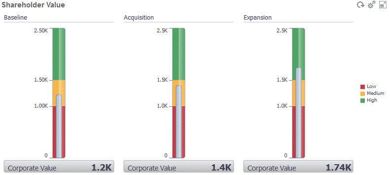 If the form has multiple values, you can display multiple gauges, up to a maximum of 36 (the values in the first 6 rows and the first 6 columns in the form). The remaining values in the form are ignored. If you want the gauge chart to display only one value, then associate it with a form that has only one cell value.