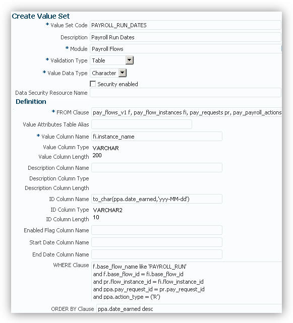Oracle Fusion Global Payroll: Value Set Usage in Flow Parameters |