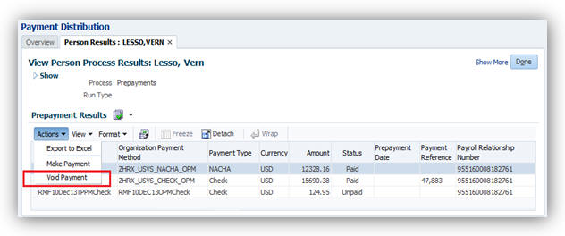 Oracle Fusion Global Payroll: Void Payment Action in Prepayments |