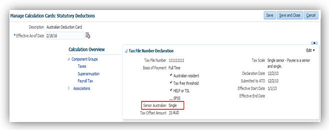 Oracle Fusion Human Capital Management for Australia: HCM Data Loader Support for Calculation Cards |