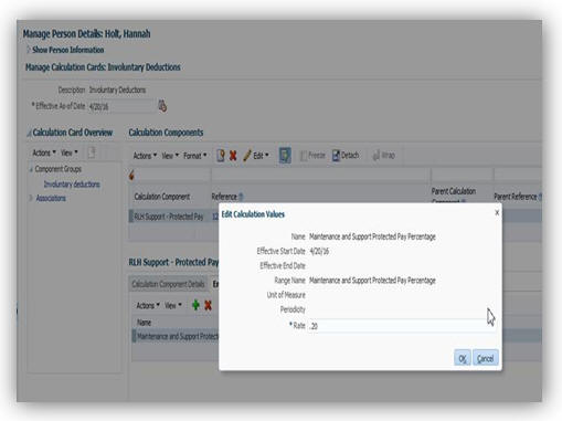 Oracle Fusion Global Human Resources for Canada: Involuntary Deductions: Protected Pay Percentage |