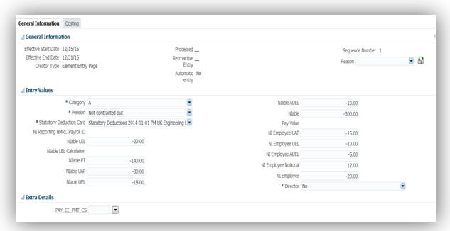 Oracle Fusion Global Human Resources for the United Kingdom: Override PAYE and NI Calculations for the Period |