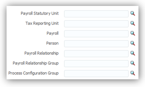 Oracle Fusion Global Payroll: Person and Payroll Relationship Group Parameters for Run Deduction Report |