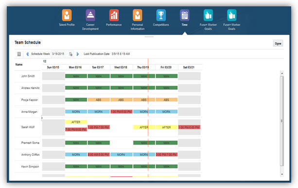 Oracle Fusion Workforce Reputation Management harnesses social networks to help organizations discover, mobilize and retain talent. This functionality provides insight into workers' social reputation and influence while also monitoring workers' social media usage compliance and mitigating social media risk.