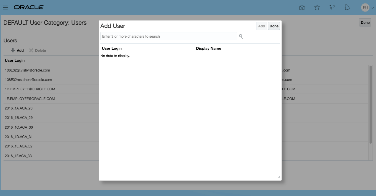 - For more information on the User Category, refer to the Security guide of your product. For example, Oracle Human Capital Management Cloud Securing HCM.