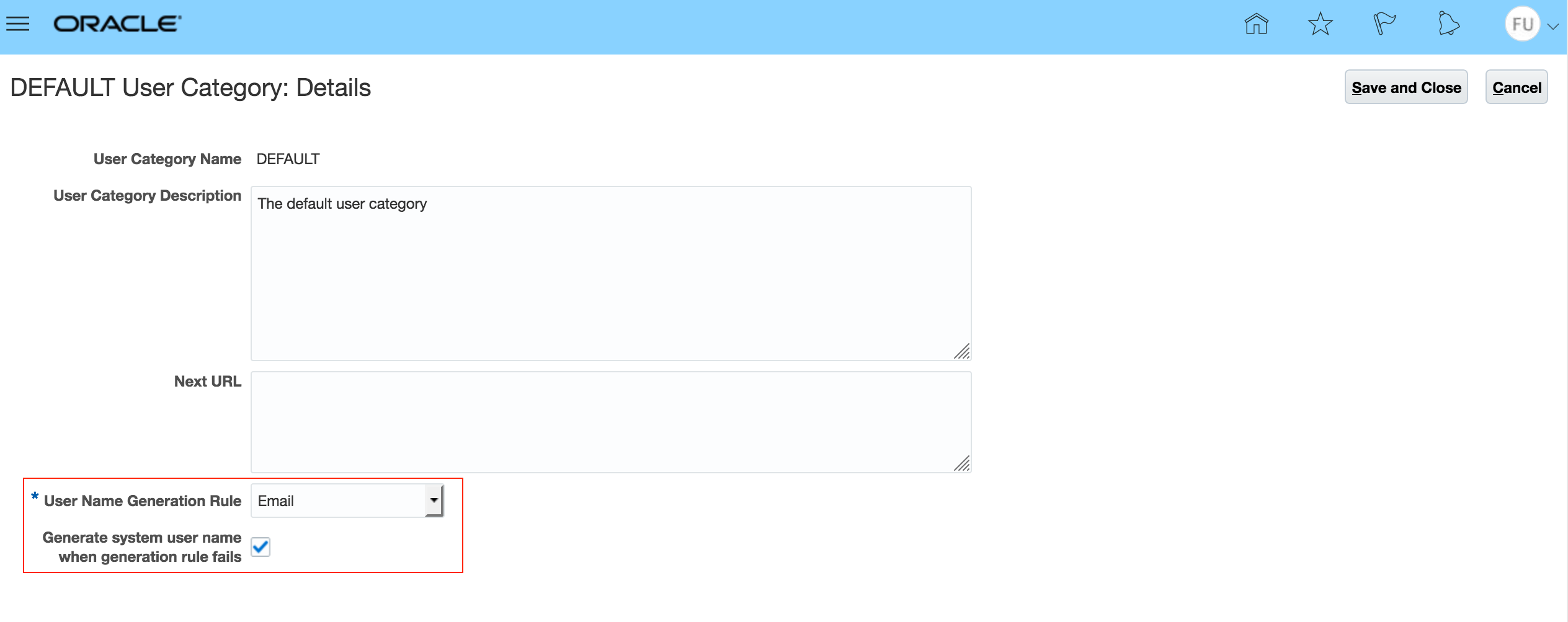 - Until now, the User Name Generation Rule that you set was the default rule for all users of a particular implementation. From this update, you can set the rule on a specific user category. That rule would apply to the users within that user category.