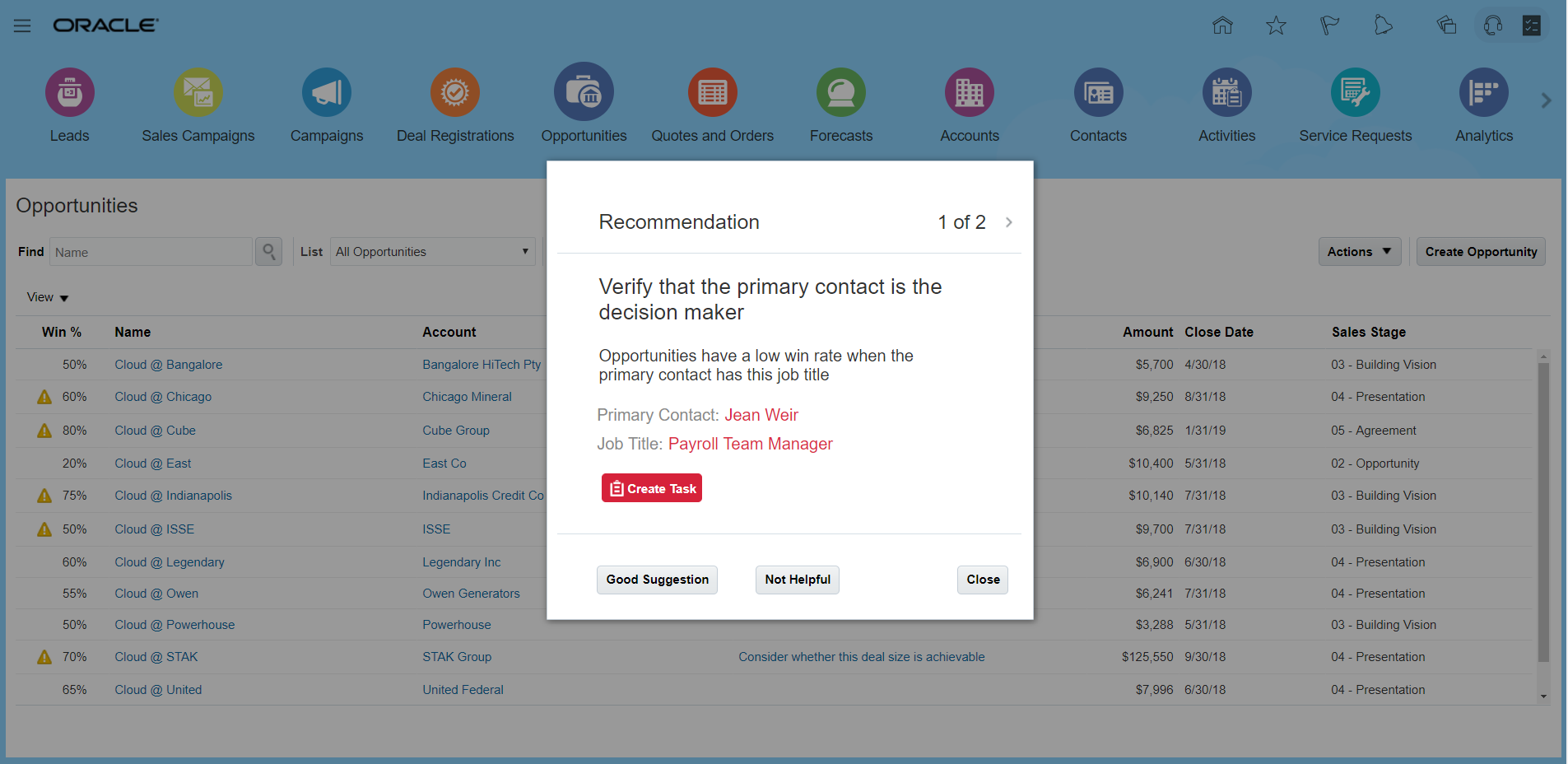 - Quick Actions: Take quick actions, such as completing a task or accepting a lead without drilling down into the transactional pages.