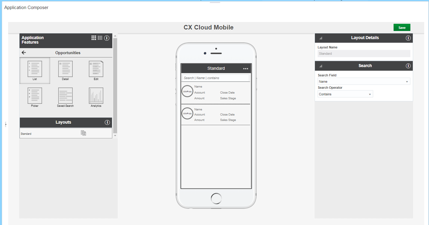 Applications List in Application Composer