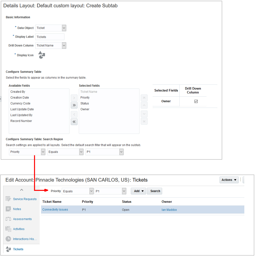 - Edit the subtab of the child object.