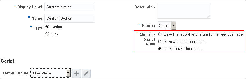 Assign new runtime behaviors to script-based custom actions of top-level custom objects. You can create custom actions that do the following: