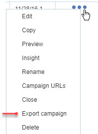 Exporting a campaign exports the campaign metadata, data schema, and content.
