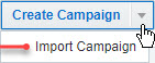 - On the Manage campaigns page, click the arrow next to Create Campaign and select Import Campaign.