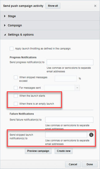 In addition, the email notification sent upon launch start now includes the campaign name and campaign ID.
