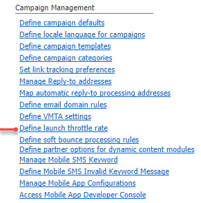 - In the Campaign Management section of the Account Management page, click Define launch throttle rate.